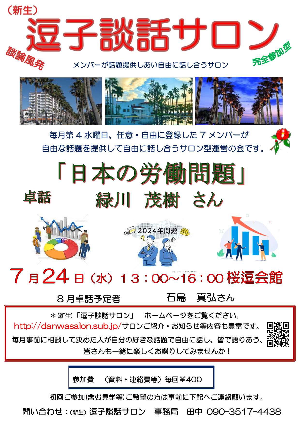 - 24年7月例会(24日)卓話 緑川芳樹さん「日本の労働問題」