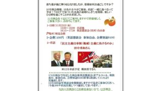 お知らせ 11月例会(23日:水)卓話 田中さん 「民主主義は専制(権威)主義に負けるのか」近年大きな問題ですね。提言も有る由にて皆さんで大いに談論風発を期待。また例会後の茶話懇談会(非アルコール、軽飲食付、自由参加、別途会費\400)も皆さん御要望も考慮し11月より再開、皆さんで楽しく...... 2022.11.03 お知らせ