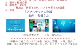 お知らせ 23年3月例会(22日)卓話 緑川芳樹さん タイトルは「プラスチックの削減」世界環境汚染の大きな課題です。例会後の懇談会に3月よりビール等の飲料も復活、楽しく大いに語りましょう。 2023.03.07 お知らせ