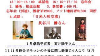 お知らせ 24年12月例会(25日)卓和 長谷川 静さん タイトルは「日米人形交換」童謡等でお馴染みの「青い目をしたお人形は・・」、皆さん詳しい話は??かも・・。長谷川さんから興味深い、お話しを伺いましょう。楽しみですね。 2024.12.09 お知らせ