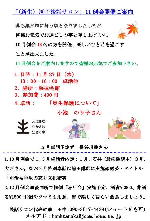 24年11月例会(27日)卓和 小池のり子さん お知らせ 2024.11.05 このページへのアクセスはメンバーに限定されています。ログインしてください。既存ユーザのログインユーザー名またはメールアドレスパスワード ログイン状態を保存する